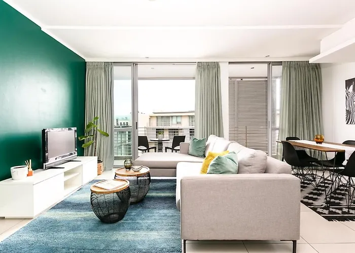 Le domicile de 60 m² est idéalement niché dans le quartier "Foreshore" au Cap à quelques pas du Palais des congrès CTICC. Le Centre commercial Cape Quarter Lifestyle Village se trouve à environ 30 minutes de marche de la résidence.